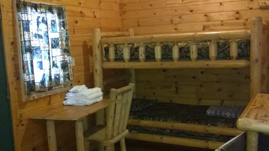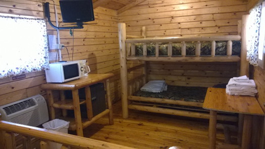 (most guests bring campstoves, electric skillets, or grills to cook with) - All cabins have a Twin over Twin bunk bed.